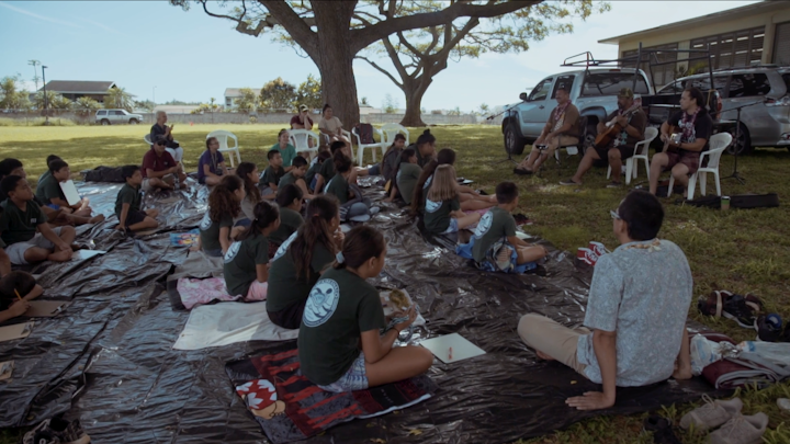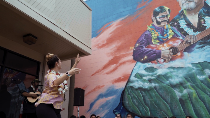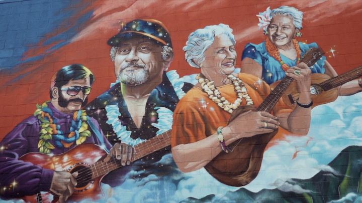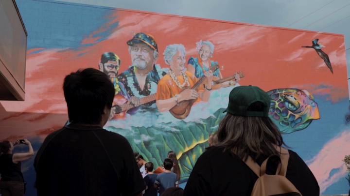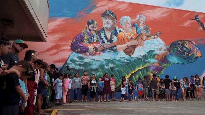 Mele Murals and the Estria Foundation collaborated with students from Waimānalo Elementary school to create a meaningful mural in the heart of their community that honors the legacy of renowned musicians that help bring Hawaiian music to the world.